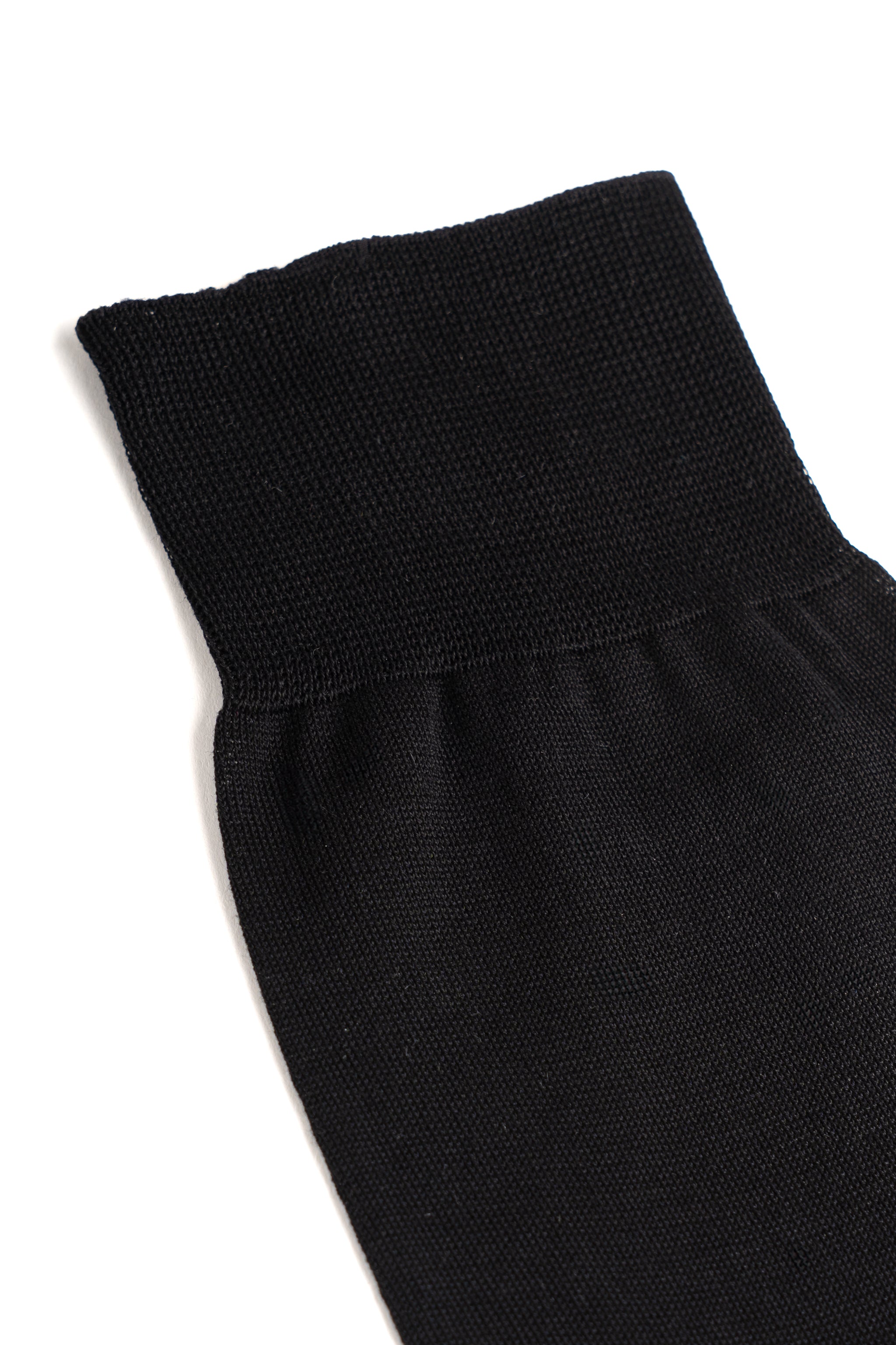 Fabricados artesanalmente en Italia, siguiendo los procesos tradicionales de siempre, estos calcetines son un ejemplo de la auténtica maestría italiana en calcetería de lujo. De diseño liso y atemporal en un elegante tono negro, aportan un toque de distinción a cualquier conjunto, mientras su tejido ligero y transpirable garantiza comodidad durante todo el día. Además, la puntera remallada a mano ofrece un acabado sin costuras perceptibles, evitando cualquier tipo de roce o molestia.