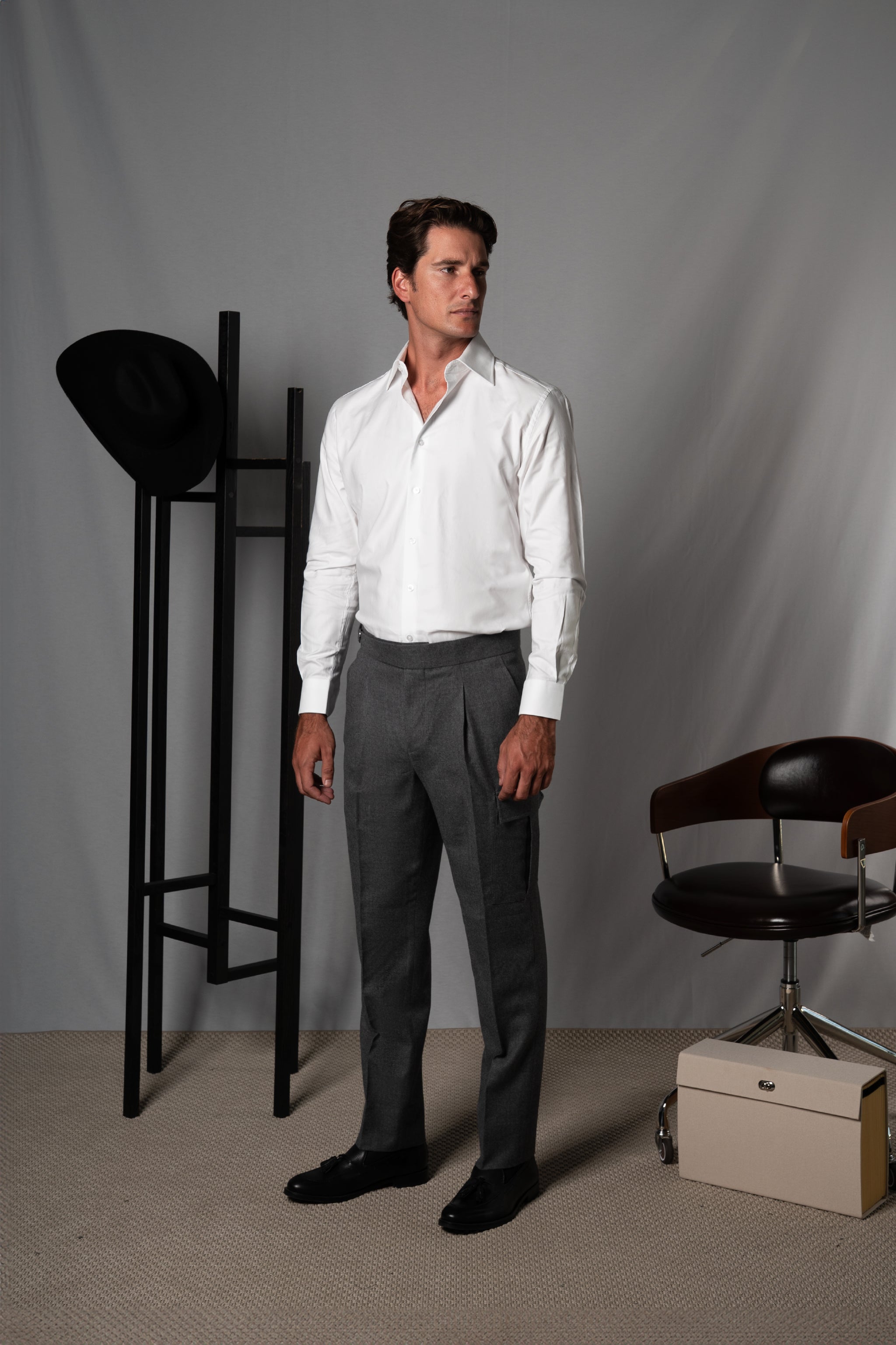 Camisa Oxford de algodón blanco con cuello italiano, suave, resistente y con la textura clásica que define un estilo refinado. Corte casual elegante que se integra perfectamente con trajes, pantalones de franela o cualquier conjunto de nuestra sastrería, proyectando distinción en cada detalle.