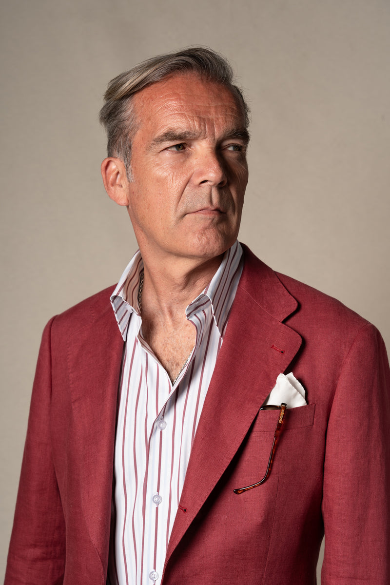 White Plain Linen Tailoring Jacket — sastreria a medida BUND, lookbook Costa Vice Spring Summer 26
