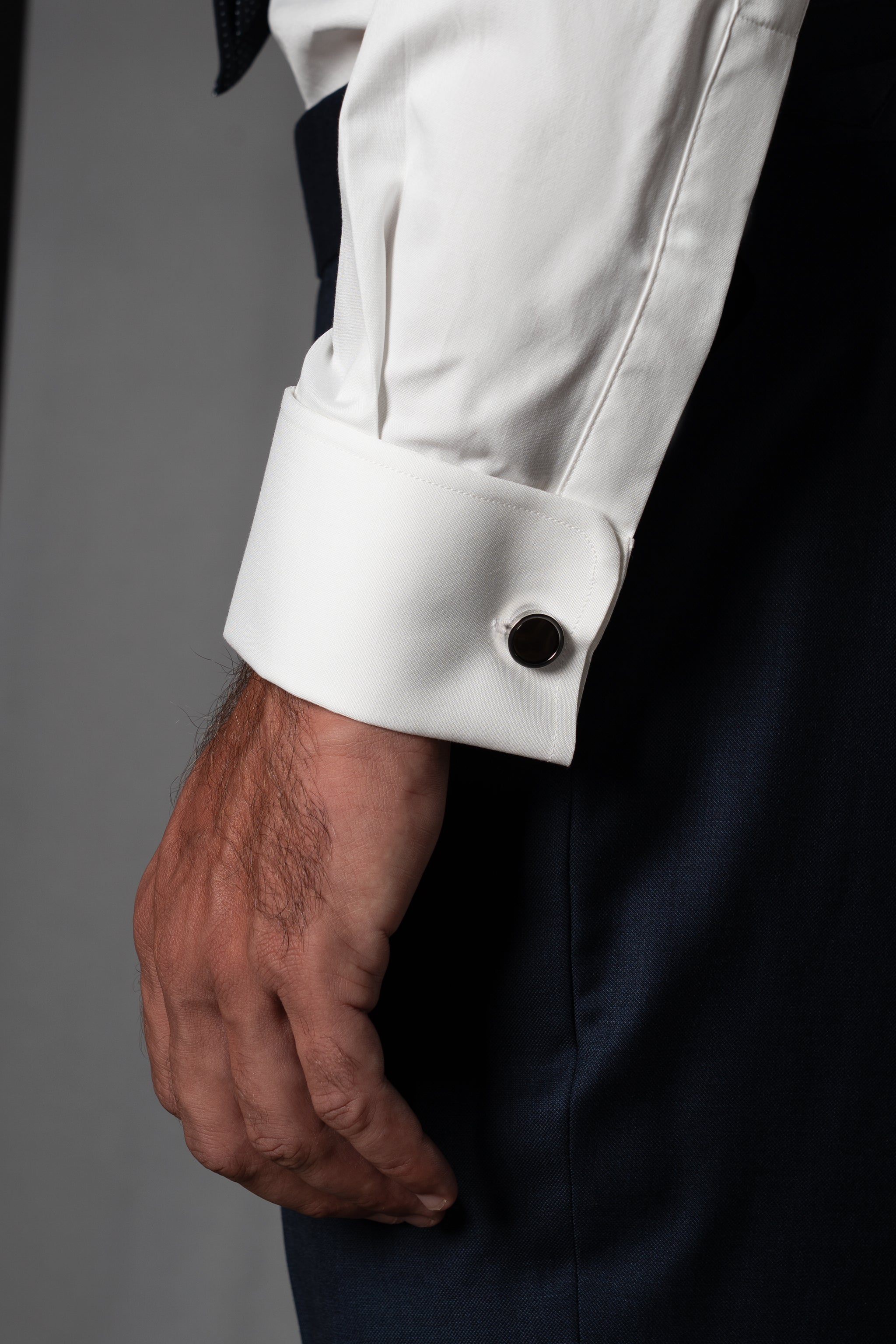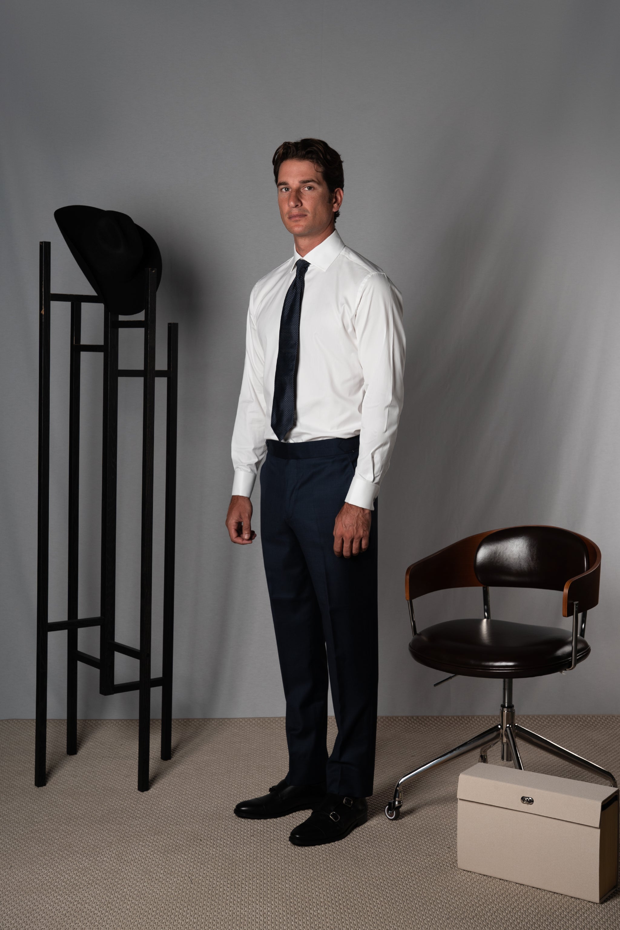 Camisa de algodón blanco liso, fresca, suave y eterna. El corte business aporta una silueta impecable, lista para combinar con traje, americana o para llevar sola con actitud. La pieza esencial del armario masculino, elevada con nuestro sello.