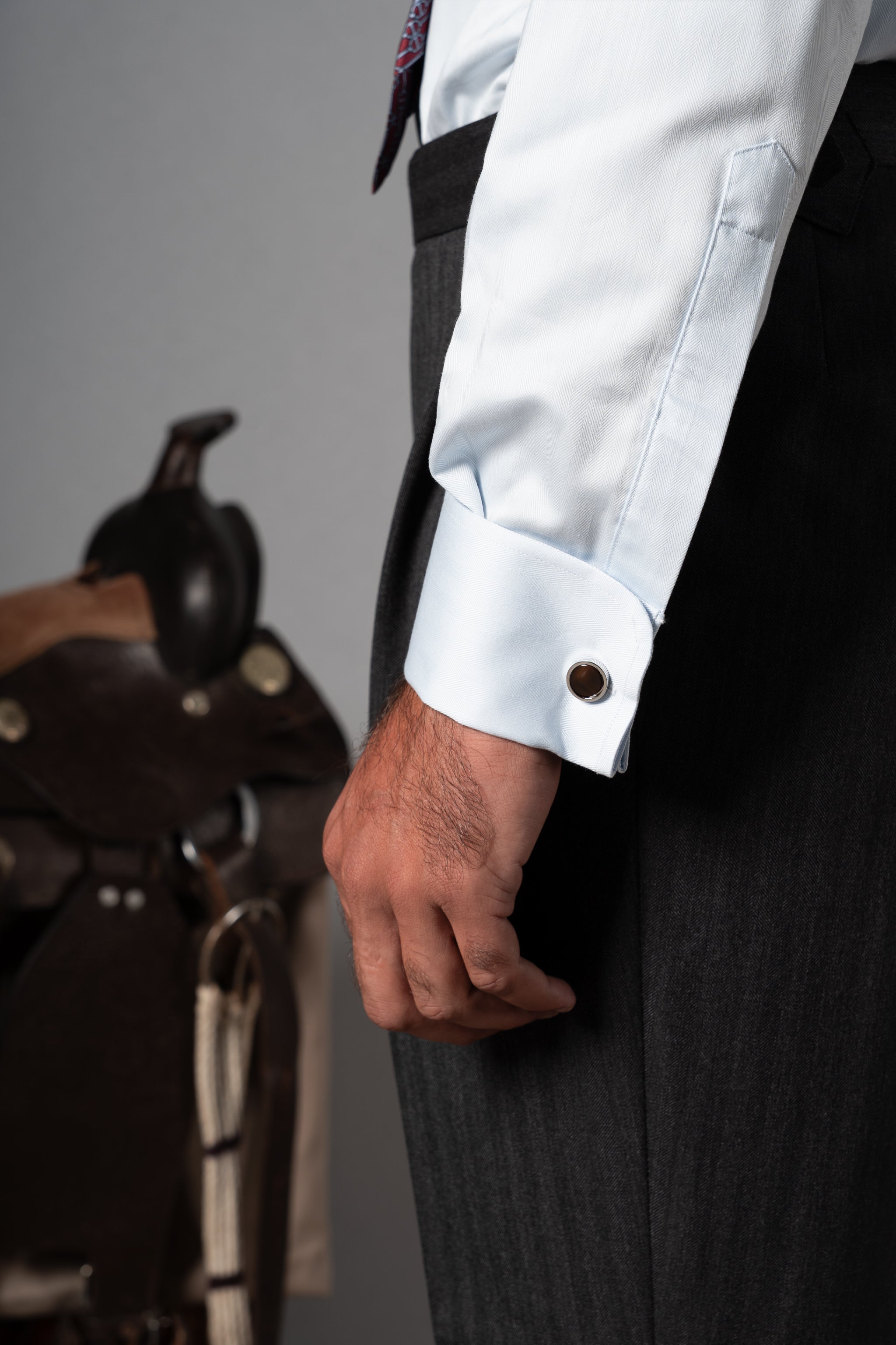 Esta camisa de espiga celeste, confeccionada en 100% algodón premium, destaca por su tejido de espiga marcada, que aporta profundidad visual y un tacto estructurado pero suave. El tono celeste ofrece luminosidad y combina fácilmente tanto con tonos claros como con trajes oscuros.