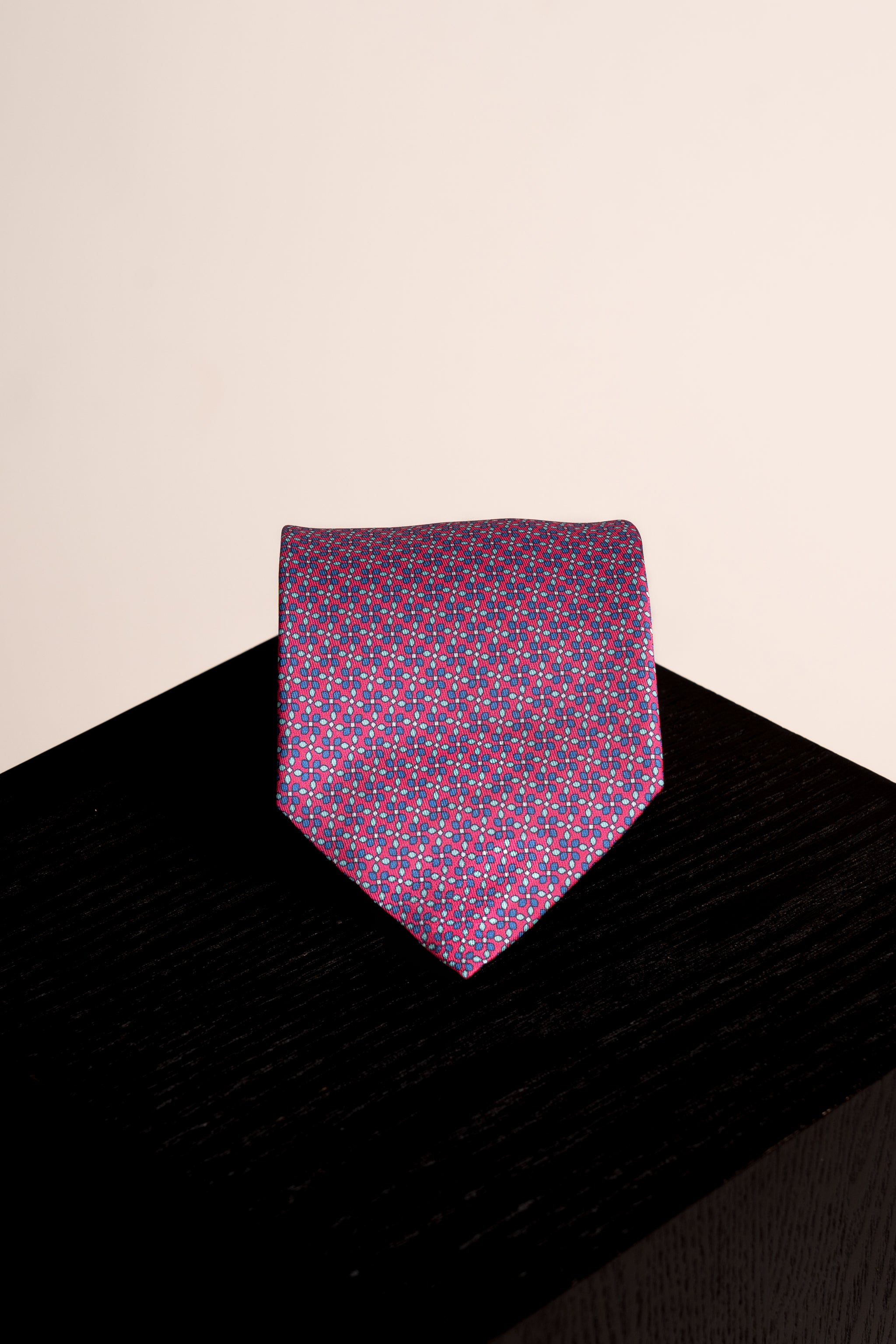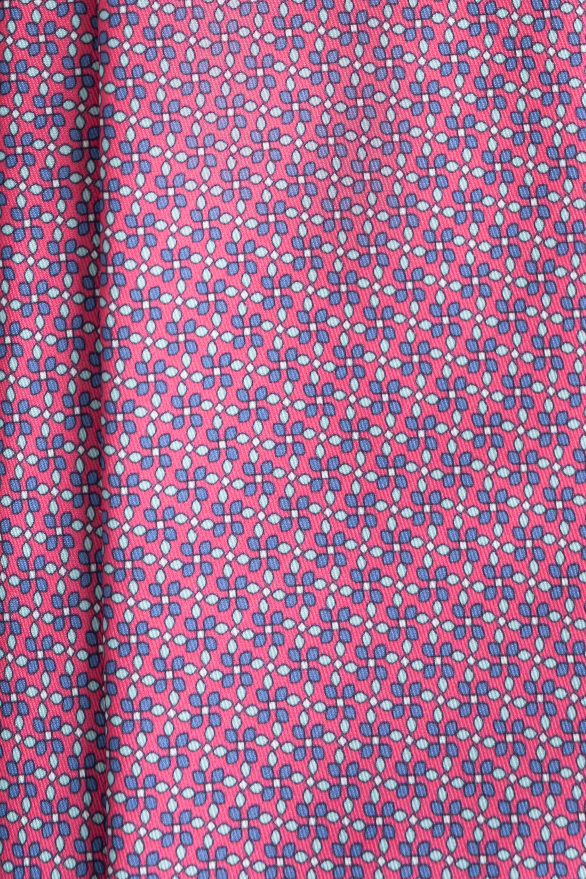 This elegant silk tie features an eye-catching geometric pattern in ideal hues. Perfect for adding a touch of sophistication to any outfit.
