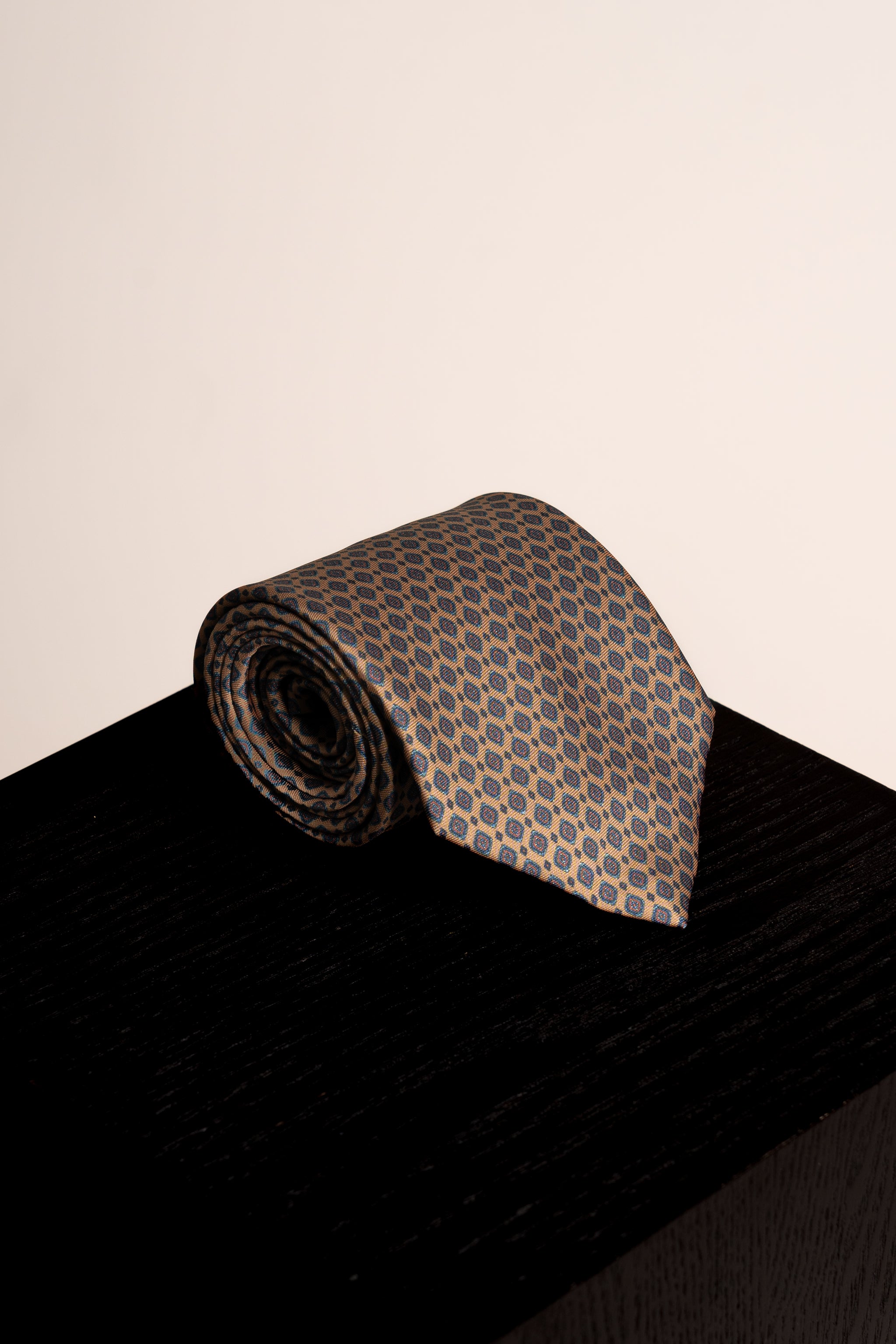 The Old Diamond Ochre tie is a touch of elegance and timeless style. With its earthy-toned pattern, this tie is perfect for any outfit. It is the right choice for formal events or special occasions, highlighting your style and distinction in any situation.