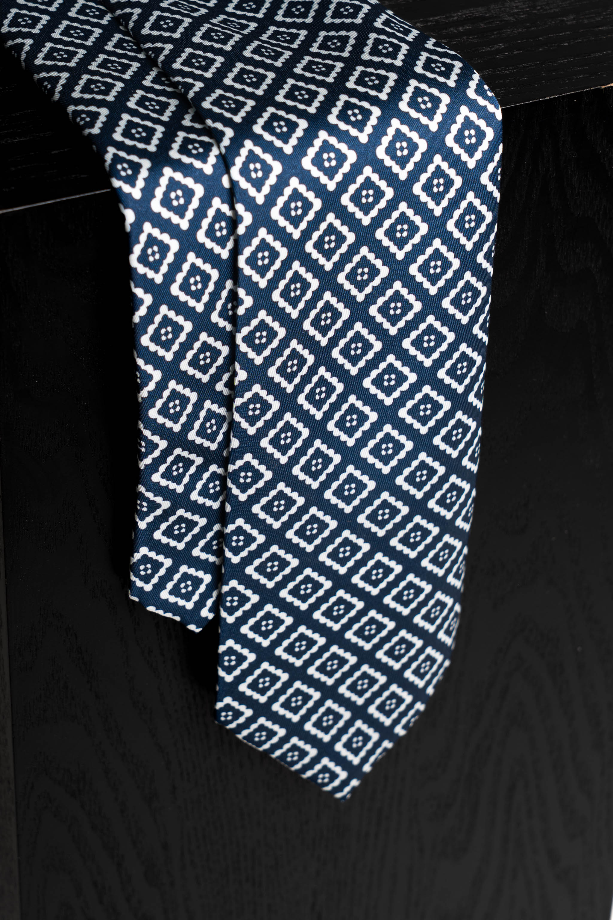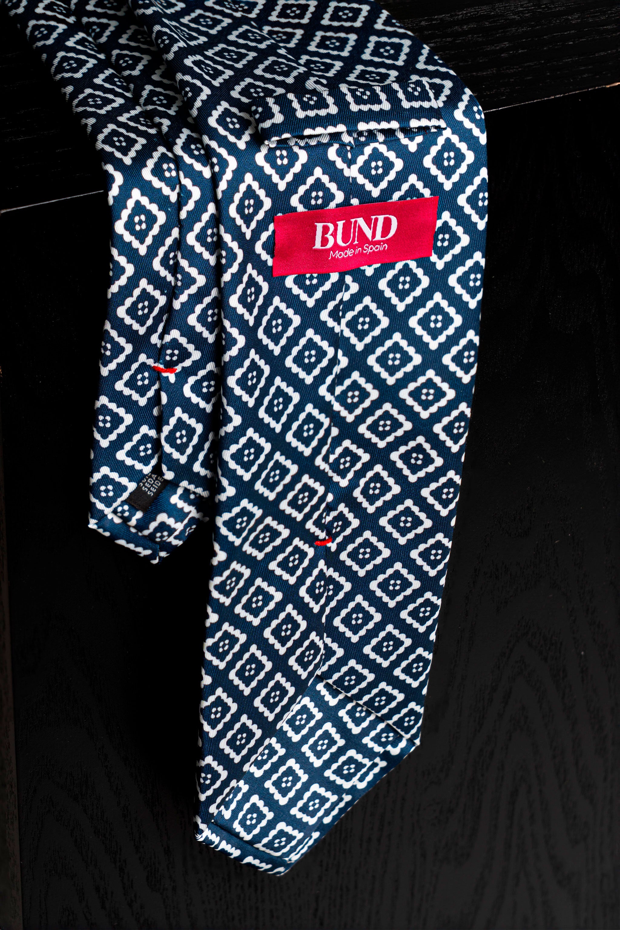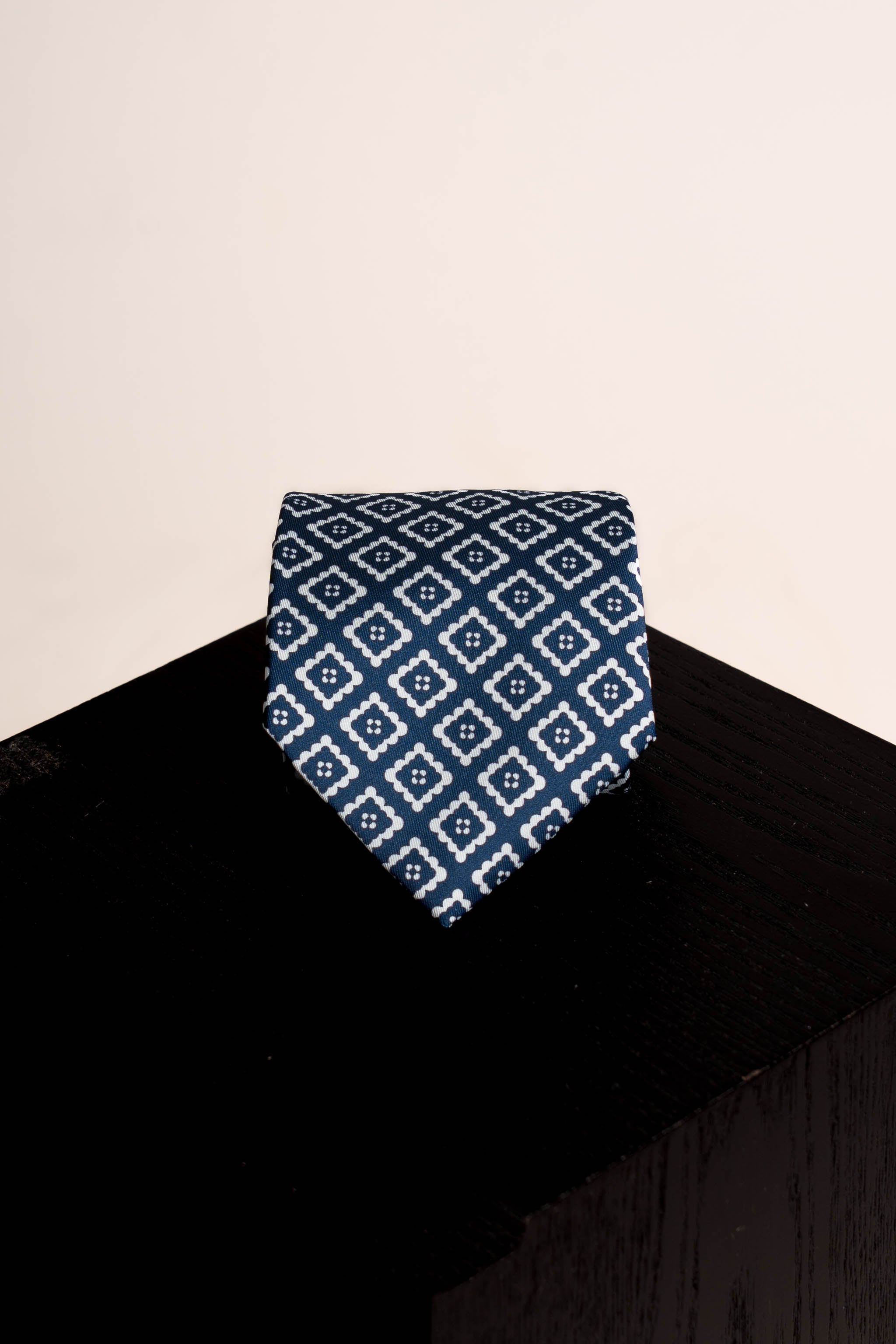 Esta elegante corbata de seda presenta un atractivo motivo geométrico con tonalidades ideales. Perfecta para añadir un toque de sofisticación a cualquier atuendo.