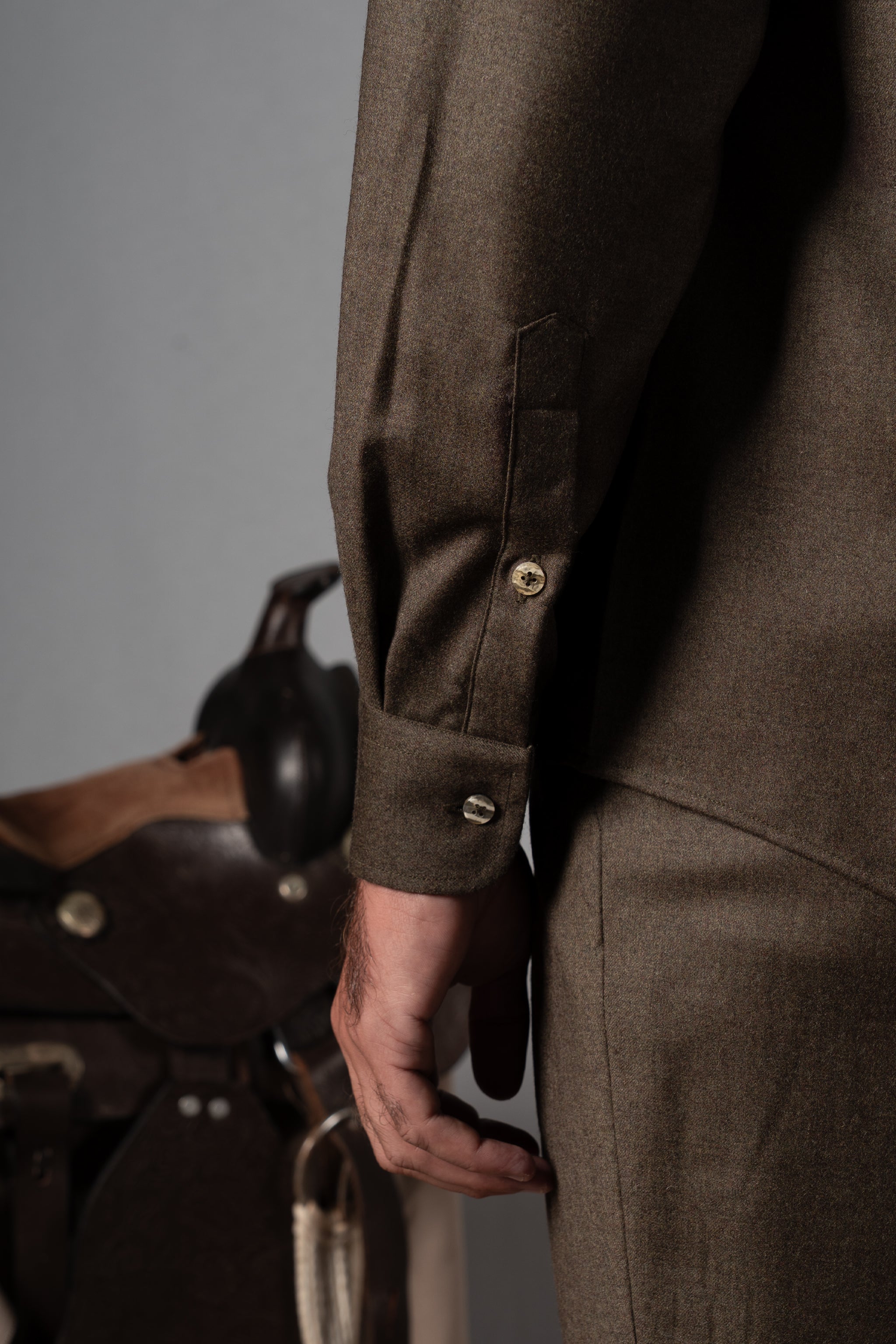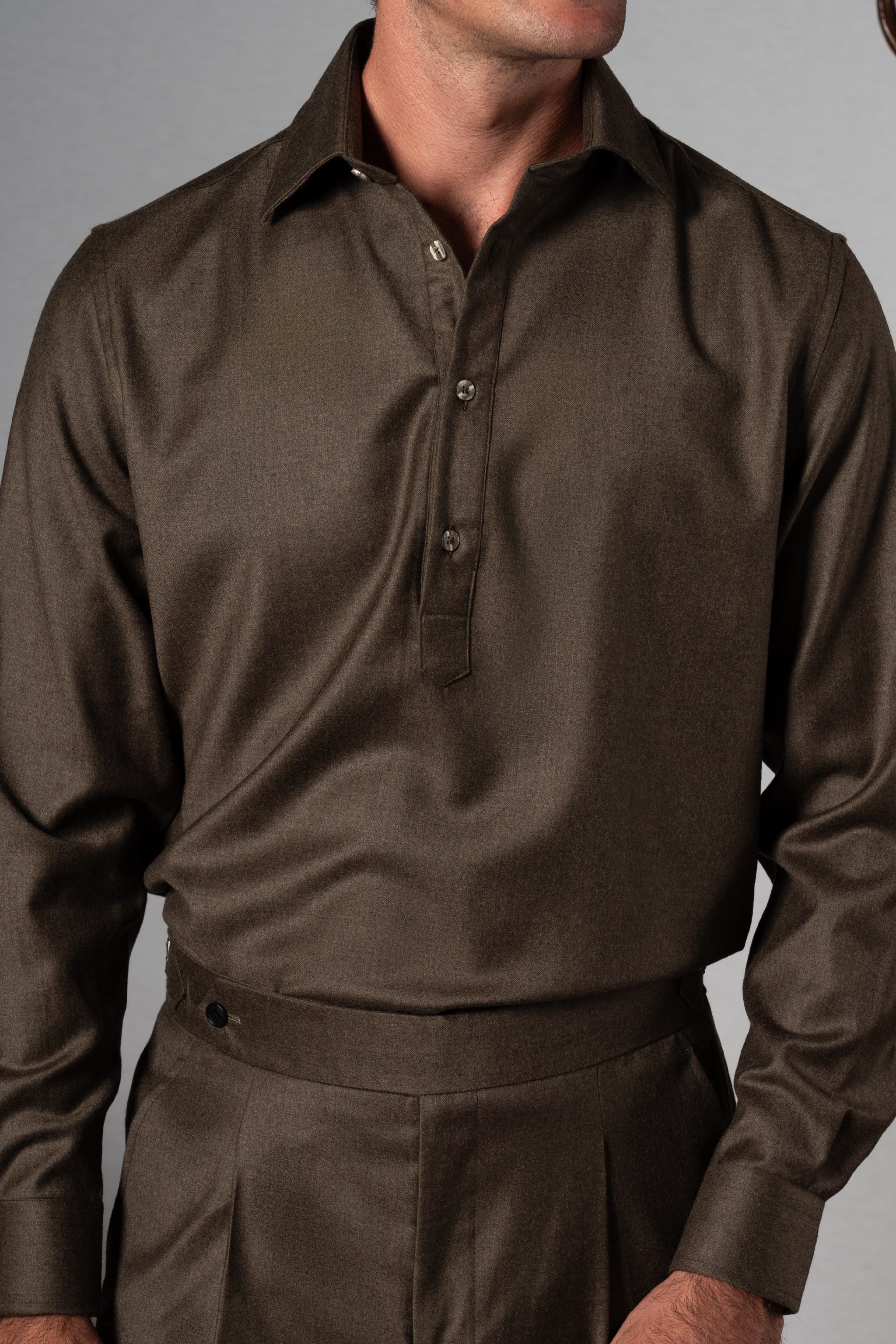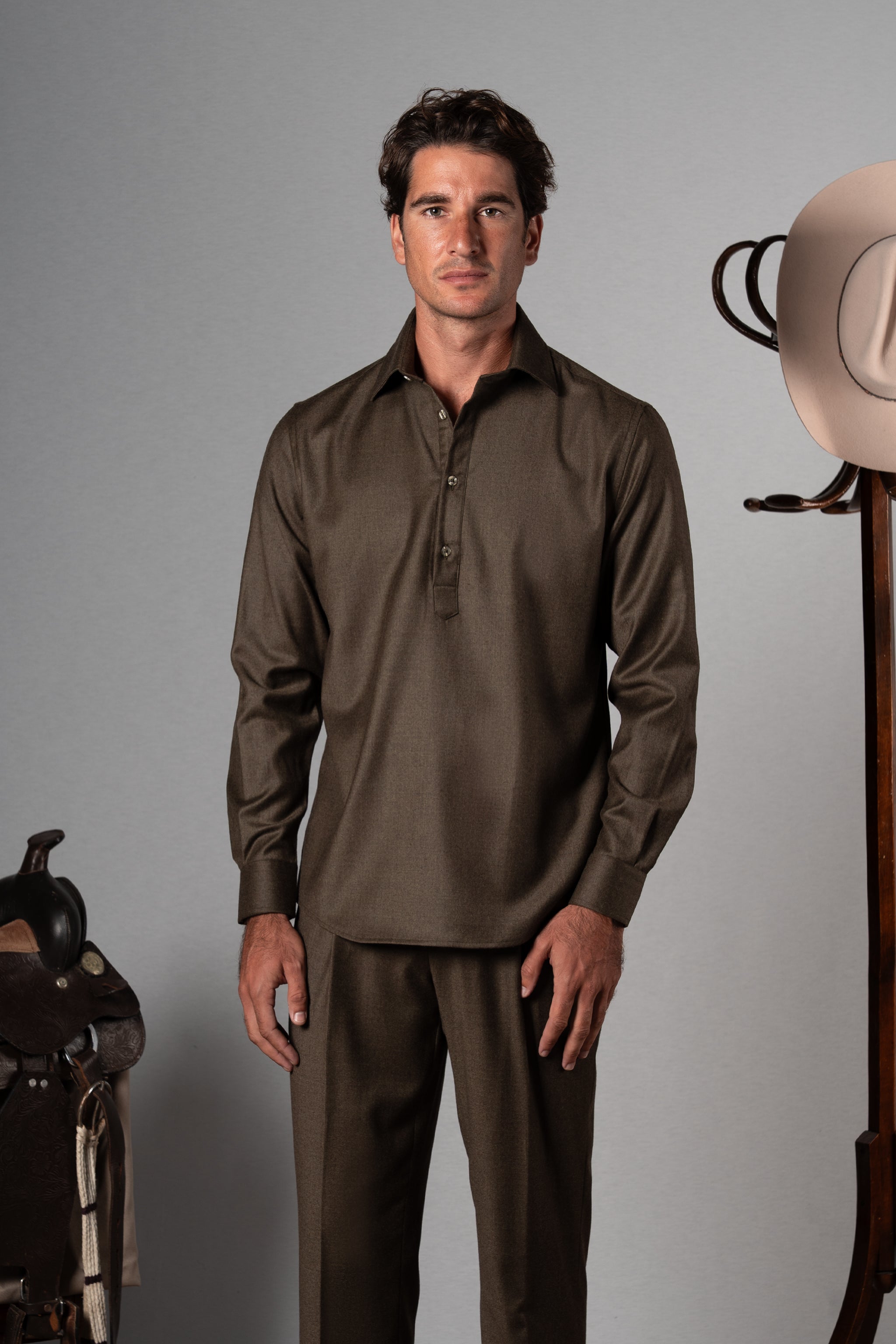 Esta polera confeccionada en franela de algodón forma parte del conjunto de americana, chaleco de doble cremallera y pantalón realizados en el mismo tejido, permitiéndote crear un total look impecable.