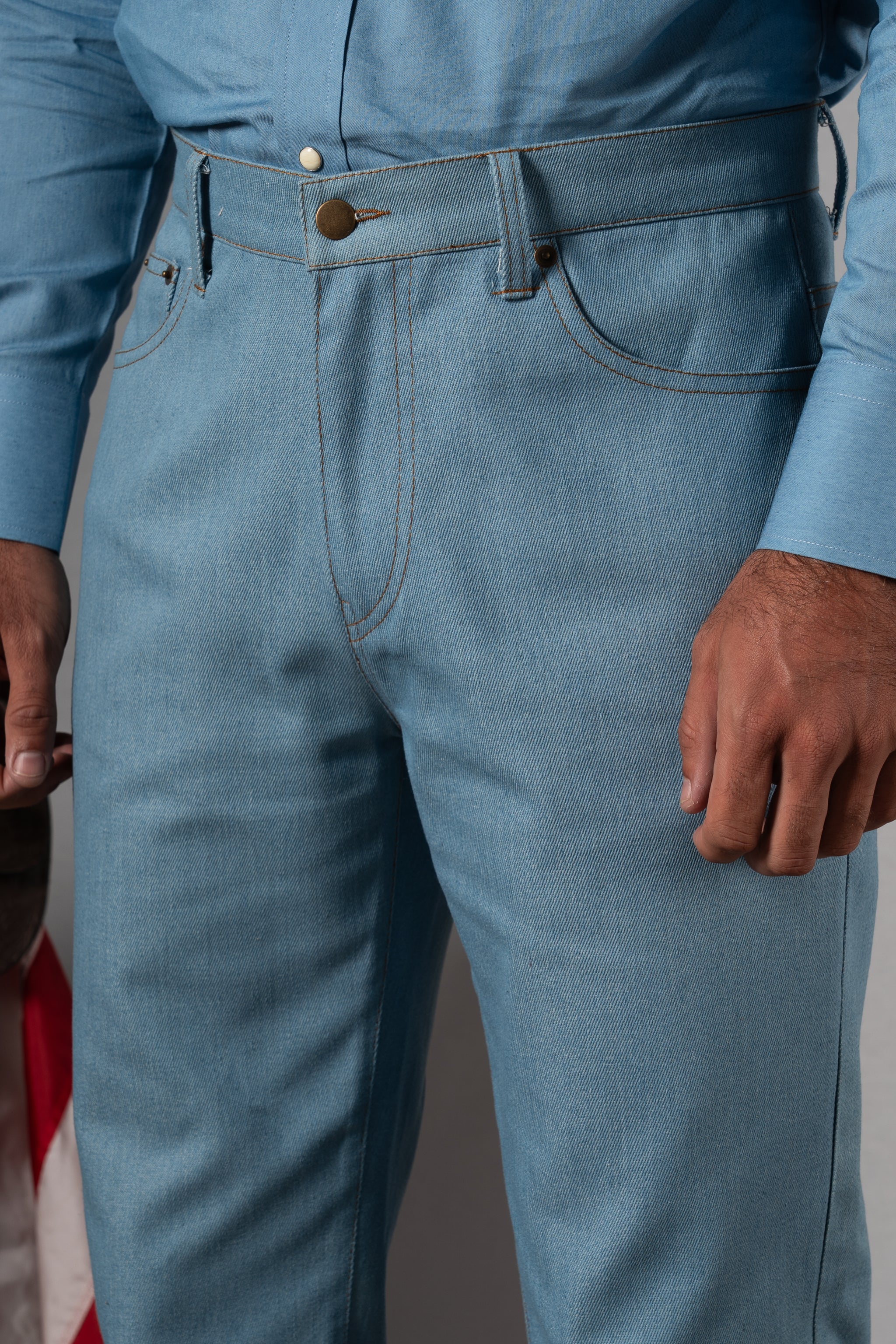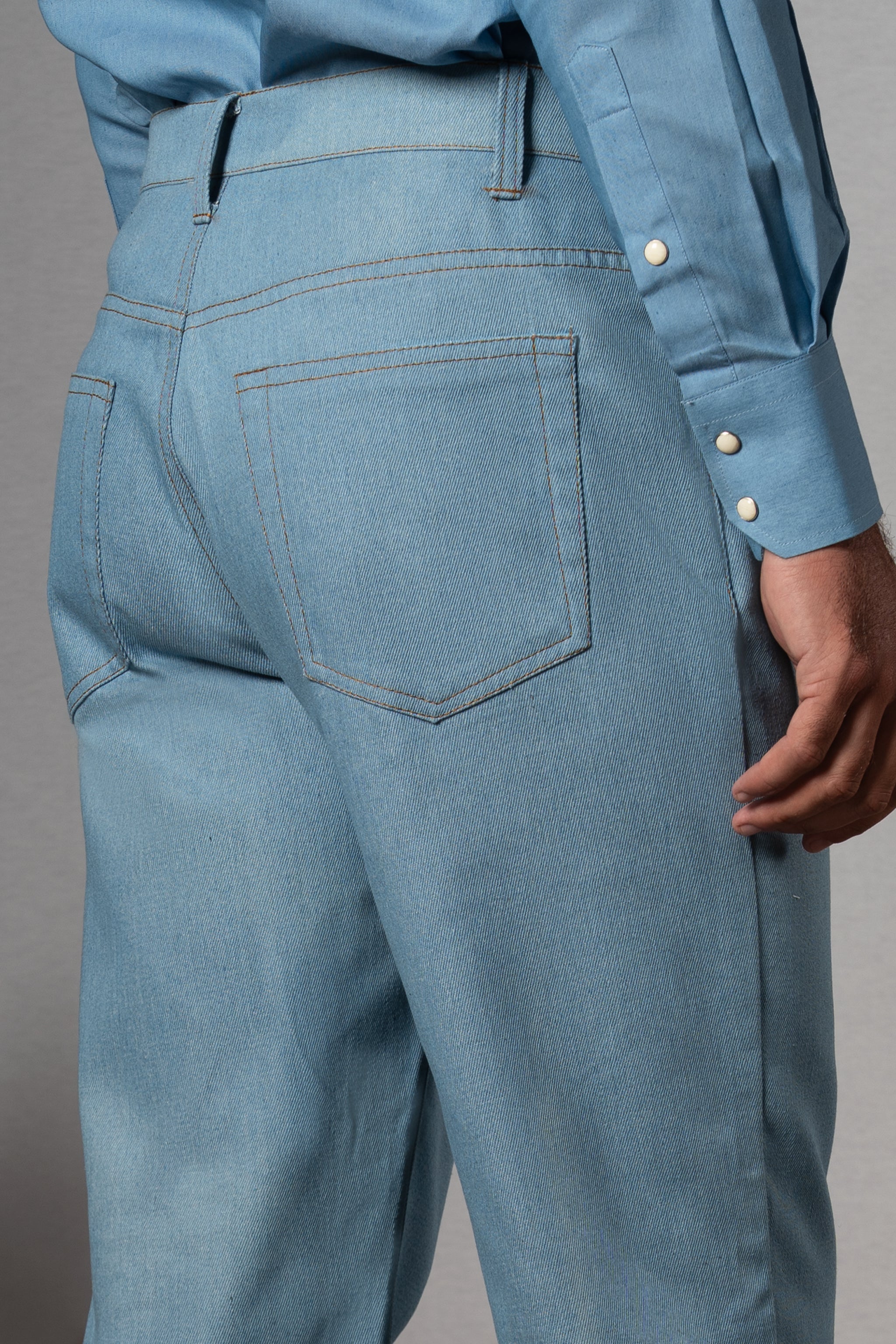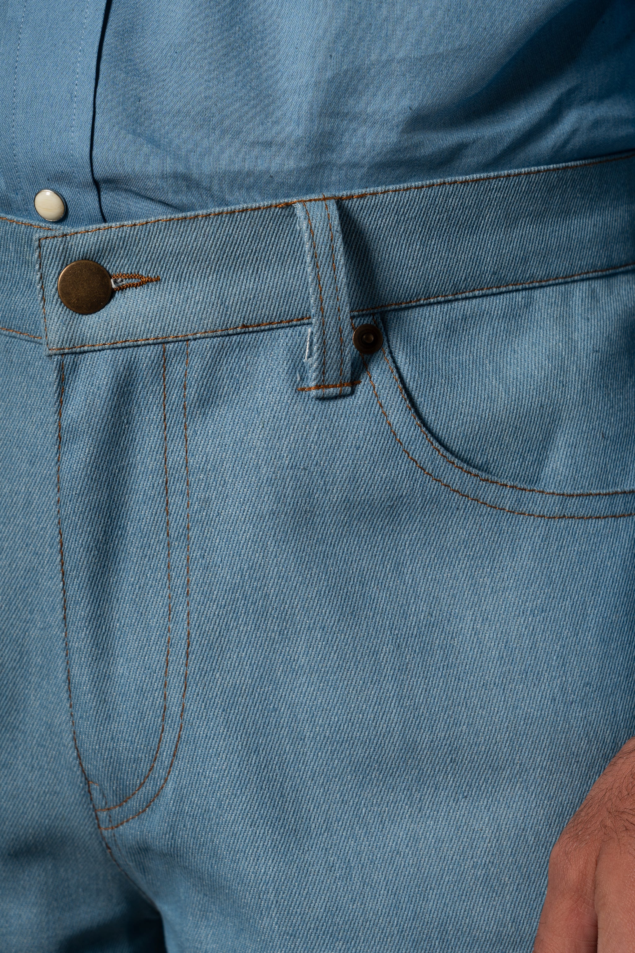 Nuestros vaqueros azul claro, confeccionados en 100% algodón, reinterpretan el clásico denim con una construcción sartorial que ofrece tiro medio-alto y caída impecable. Disponible a medida, permite que cada pieza se ajuste a tu silueta como un verdadero sueño de confort y proporción.